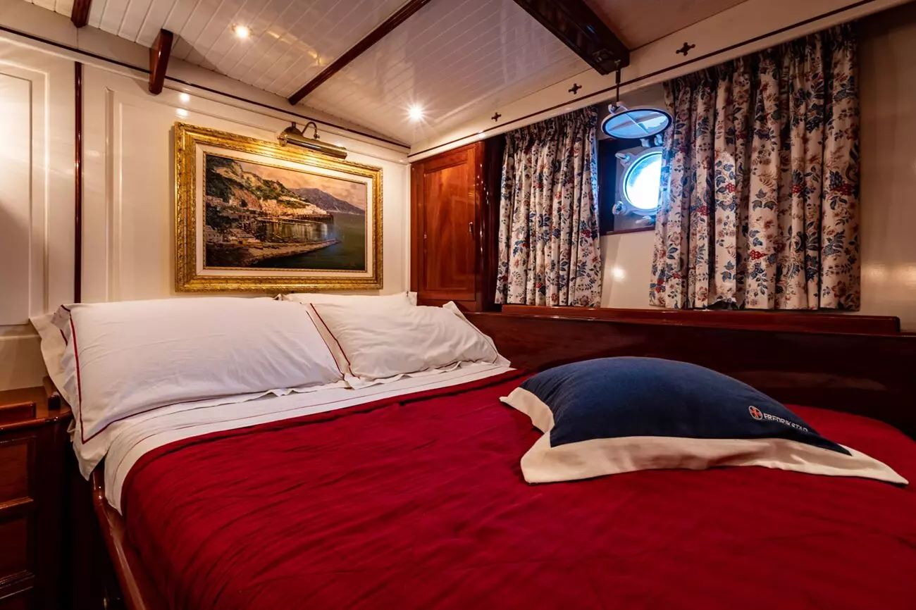 In 1996, she was purchased by Peter de Savary of America’s Cup fame, who stripped the boat to bare frames for a major restoration and refit that transformed Fredrikstad into the stunning yacht that she is today. Under the stewardship of her most recent owner, Fredrikstad underwent many refinements, notably at Pendennis Shipyard, founded by Peter de Savary and renowned for restoring luxury yachts. In 2006, at Spanopoulos in 2012, and at Cantieri Navali di La Spezia in 2021.