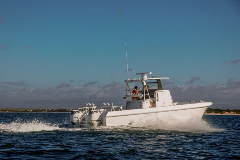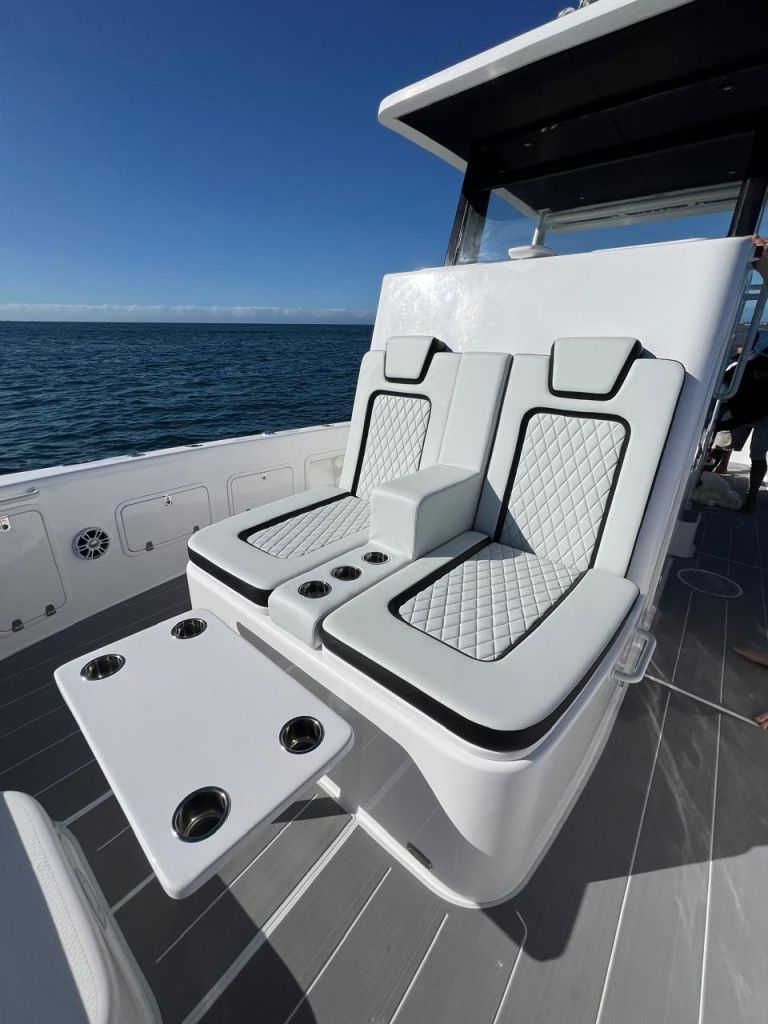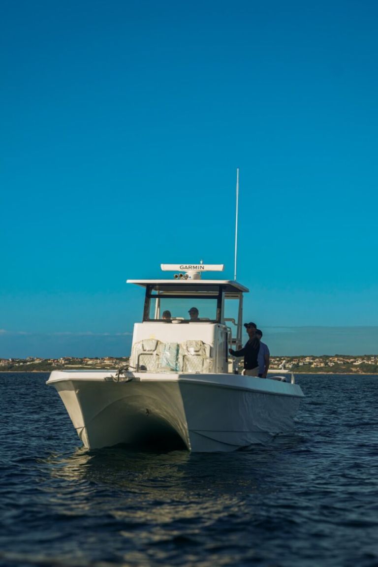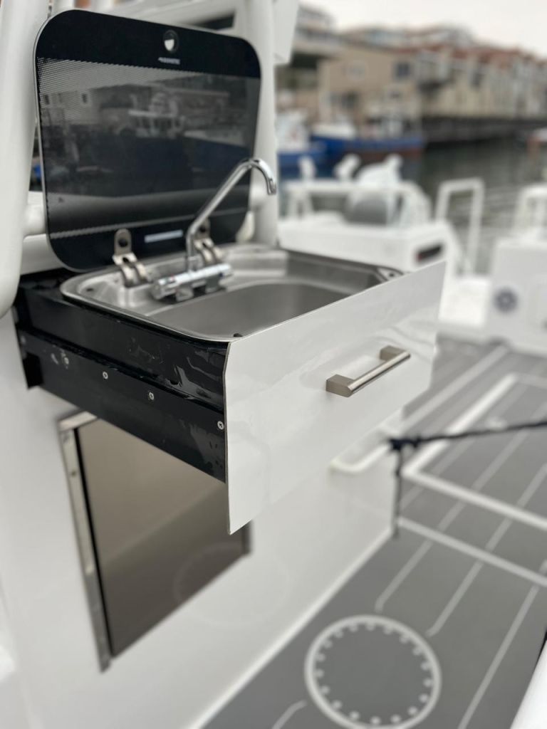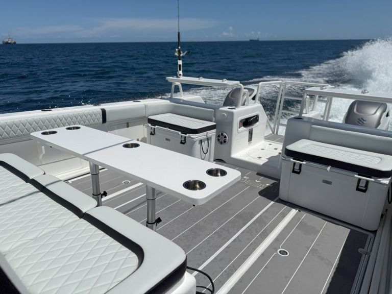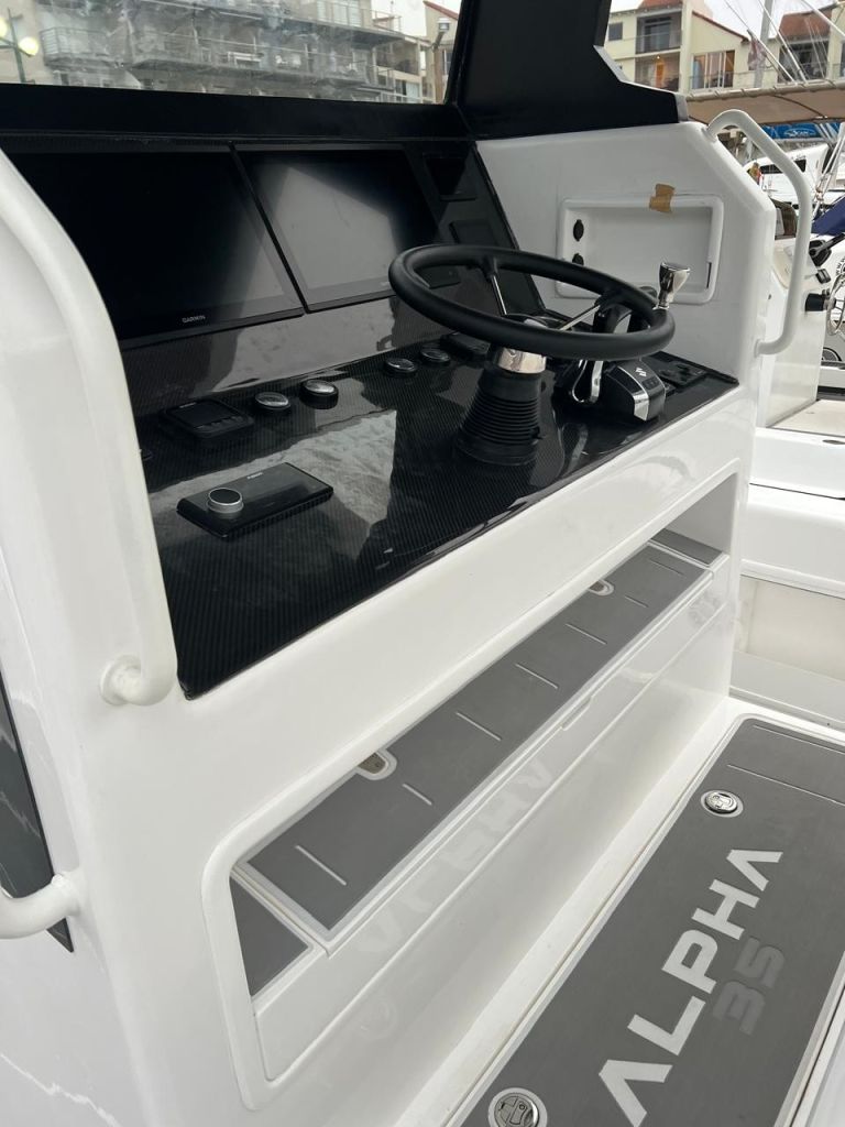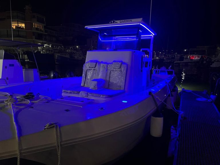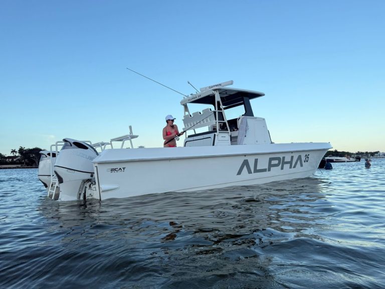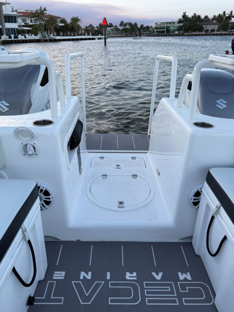 Introducing the stunning Gecat ALPHA 35, a brand-new center console boat designed for both performance and comfort. With an impressive overall length of 35.10 feet, this catamaran hull is crafted from durable foam filled fiberglass, ensuring stability and a smooth ride on the water. Powered by twin Suzuki DF350AMDX outboard engines, each delivering 350 horsepower, the ALPHA 35 promises exhilarating speed and agility, enhanced by stainless steel 6-blade propellers for optimal performance. Equipped with an electric windlass, this vessel combines modern technology with convenience, making anchoring effortless. The boat features a well-appointed head, ensuring comfort during your adventures. Whether you’re cruising with friends or enjoying a day of fishing, the Gecat ALPHA 35 is designed to elevate your boating experience, offering both luxury and functionality in a sleek, contemporary package.