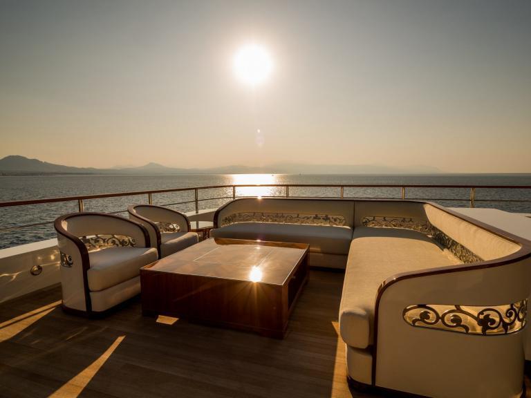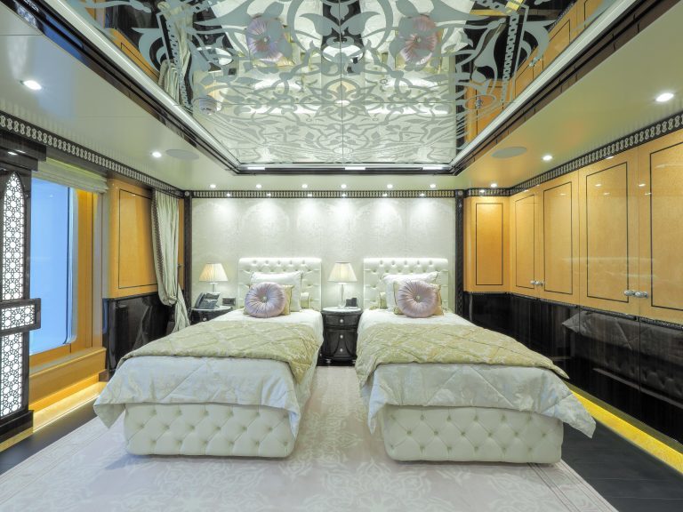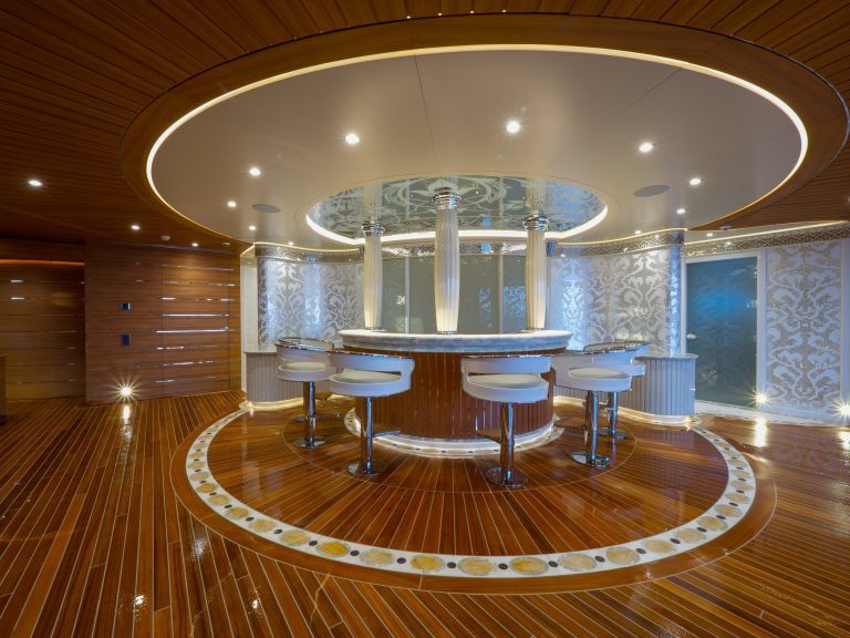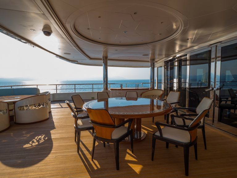The 262’ (80m) yacht ELEMENTS hosts up to 12 guests in 12 staterooms, and the Master and VIP suites can be combined into a luxurious family apartment. With 29 crew on board, she offers very high levels of service. Beach club, spa, and movie theatre to make your charter experience complete.