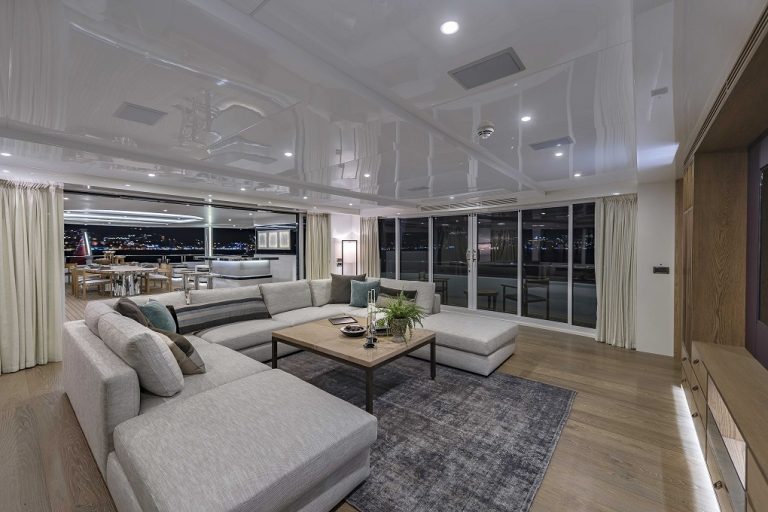 Come on board, switch on the state-of-the-art Sonos entertainment system and relax by one of the three wet bars on board with your friends and family in full comfort – thanks to her four fin zero-speed stabilisers.