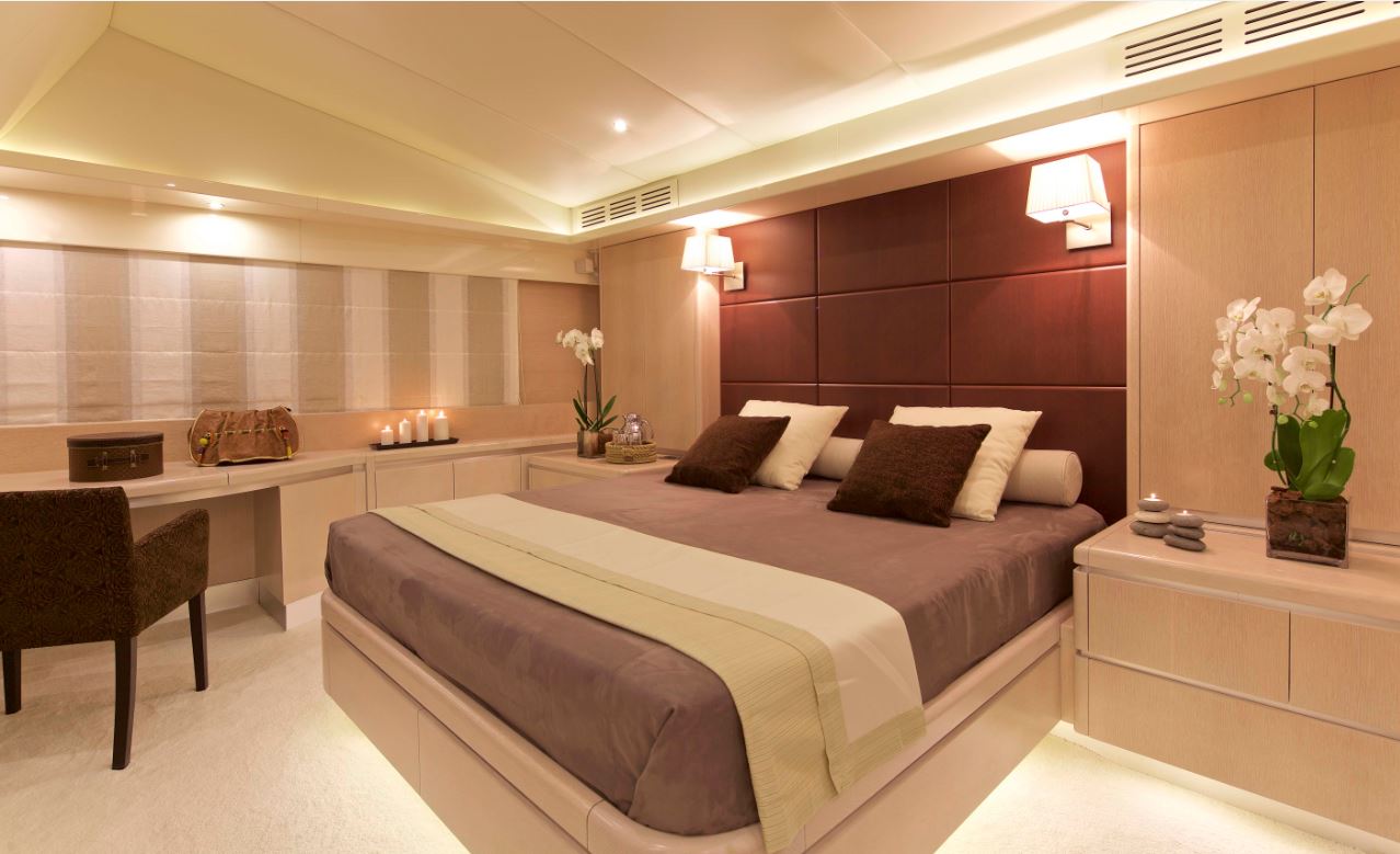 - Desirable main deck master stateroom decorated in gorgeous earth tones that will appeal to a wide variety of clientele