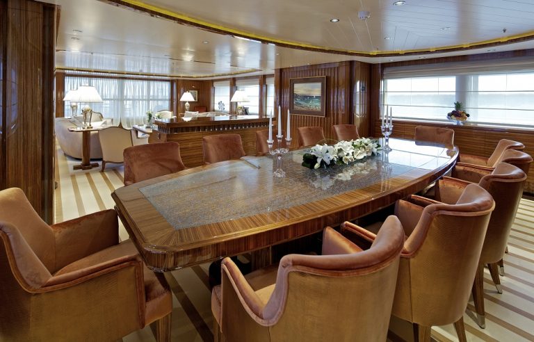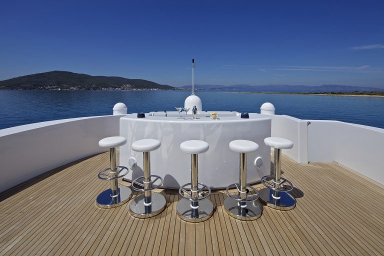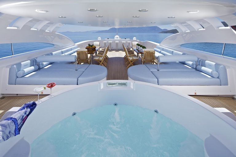 The 176’ (54m) yacht MIA RAMA offers large salons and wonderfully shaded deck spaces. A separate gym room and a variety of water toys allow for an active charter, too. Her sundeck with jacuzzi and al fresco dining options on every deck invite you and your guests to make the most of your time during your charter in the Mediterranean.