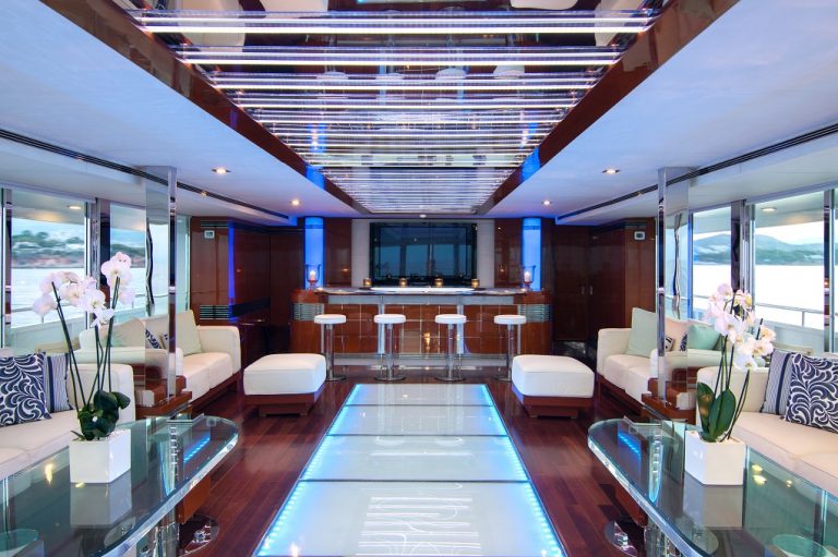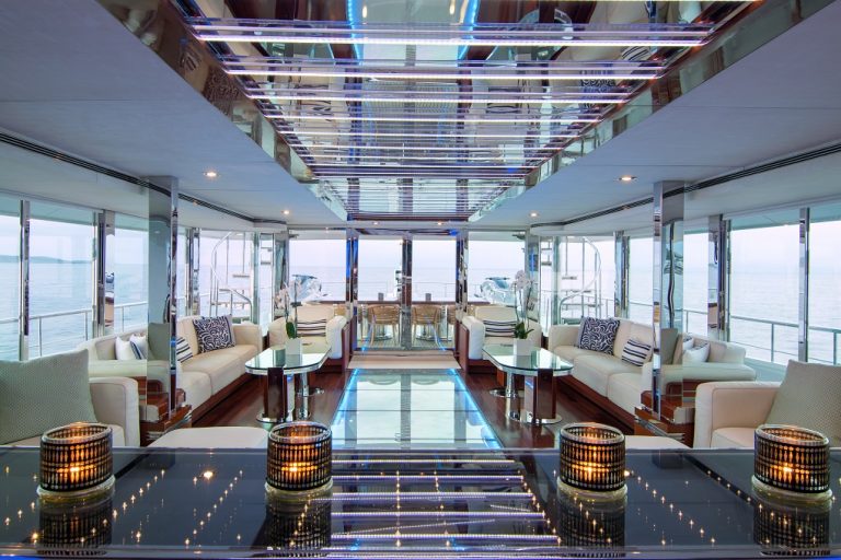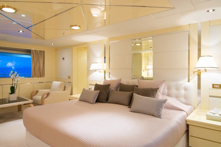 The 184’ (56m) yacht O’NATALINA has been refitted with a modern and airy design. Her accommodation layout comes with one Master and two VIP staterooms. With multiple lounging, dining, and entertaining options including a dancefloor. A crew of 13 will provide you with both relaxation and stylish celebrations.