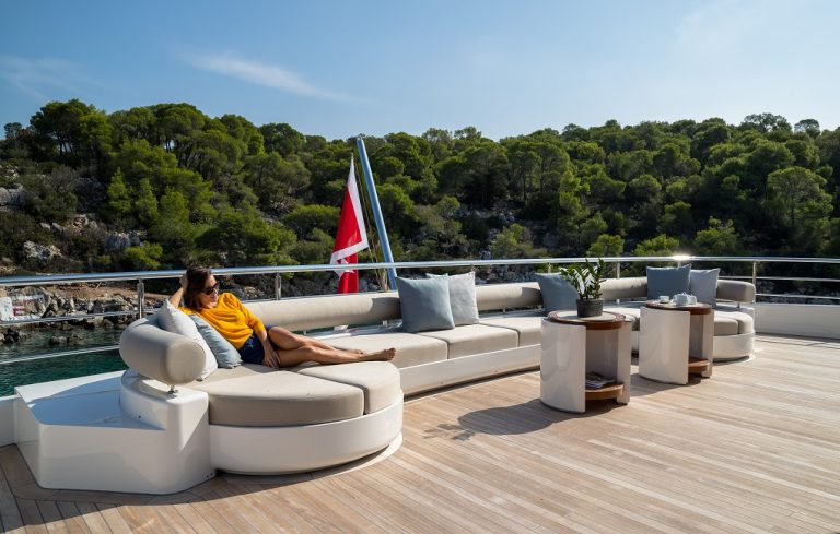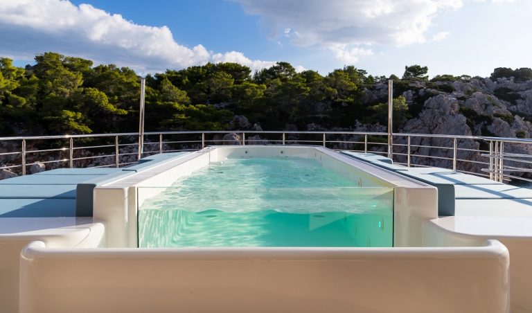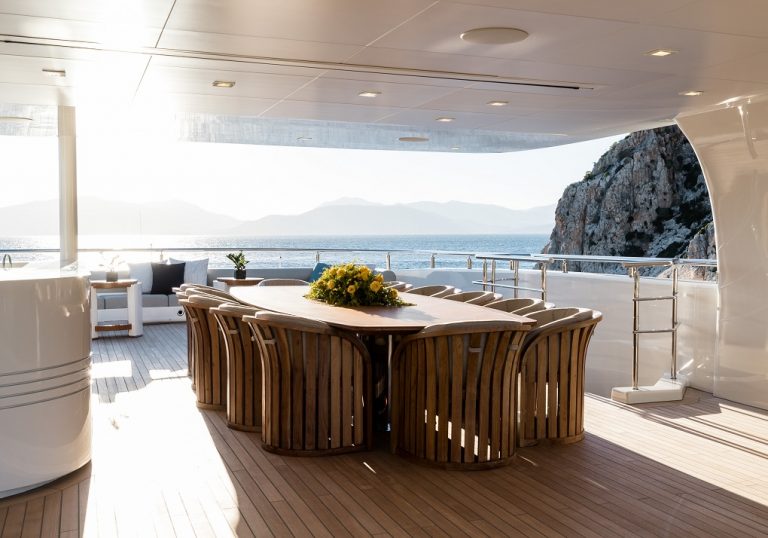 The 279’ (85m) yacht O’PTASIA offers an abundance of space and entertainment opportunities. She accommodates 12 guests comfortably, who are catered for by a crew of 29. A limo tender and helipad ensures you smooth and dry transfers.