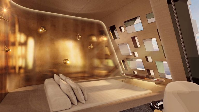 Progressive and creative thinking extends to all the systems aboard. LuxLab, the custom design label from Van Berge Henegouwen (VBH) has joined the team to ensure that this is an extremely “smart boat.” Not only are there controls for HVAC, lighting, audio, video, curtains and such, but controls will also monitor behavior aboard regarding preferences such as music and temperature. Furthermore, there are plans to create a 360 room, a multipurpose space for both interactive design and information.