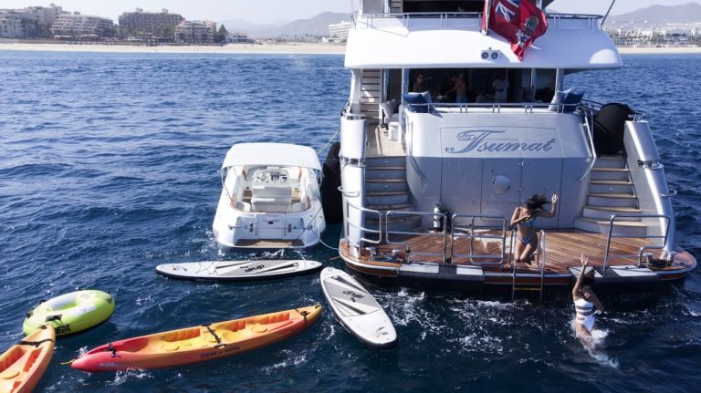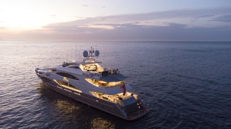 TSUMAT is a spectacular yacht with her expansive open spaces. Powered by Caterpillar, it cruises comfortably at 18 knots with a top speed of 23 knots.