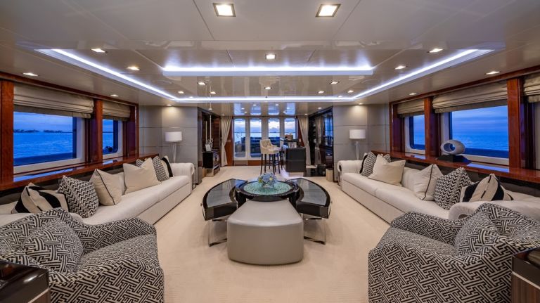 Her interior is modern with a neutral palette paired with exquisite colourful artwork. She has 6 generous staterooms including an impressive full beam master and VIP on the main deck, three doubles and one twin. All are ensuite and beautifully styled to create the perfect haven for guests to retreat to during their time on board.